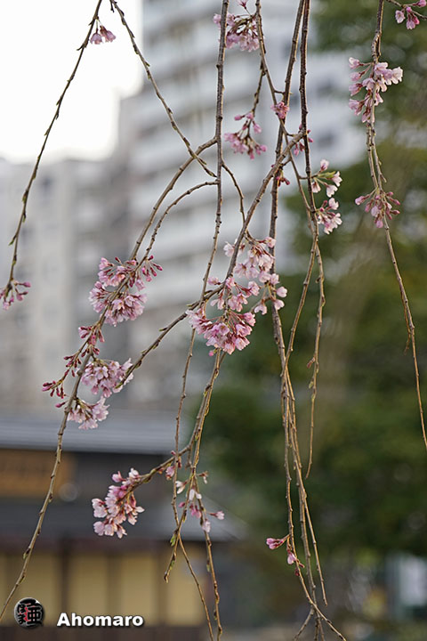 でもね、しだれ桜は寒さを我慢してどんどん開いて来ましたよ。境内のしだれ桜、宝蔵門前と、影向堂の六角堂が綺麗に咲き誇っておりました。