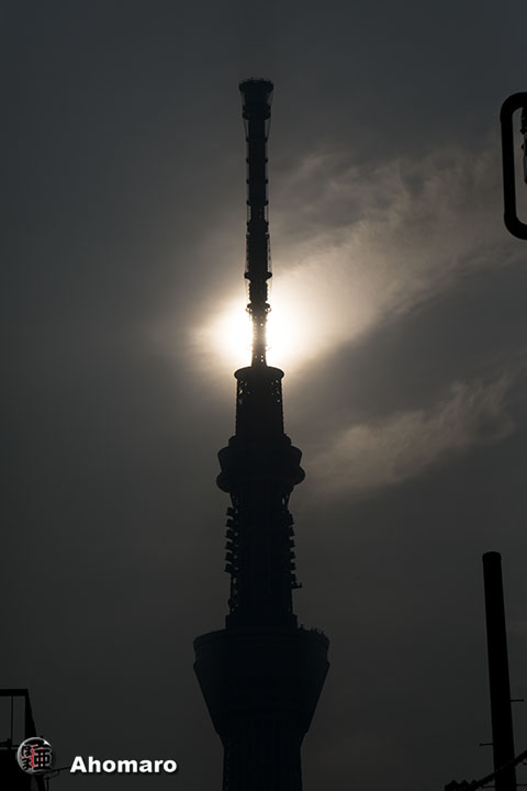 今朝の「天空半影」、薄かったけど公会堂横から撮りました。