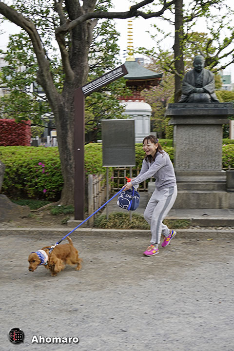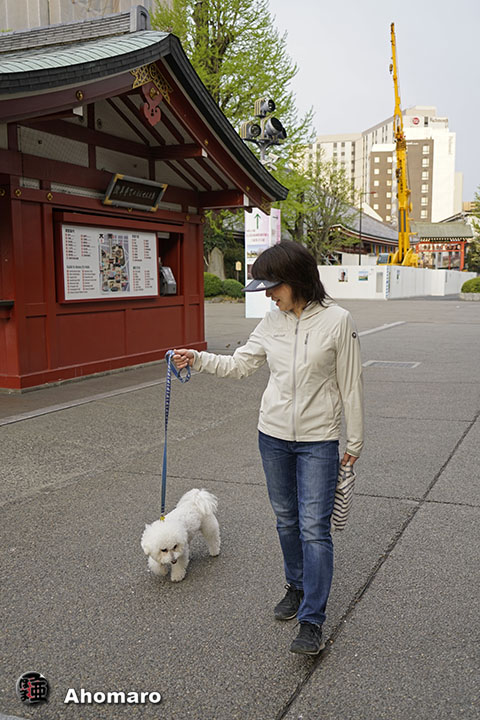 浅草神社にメグちゃん。今朝は早い散歩ですね。