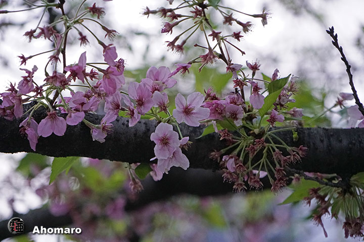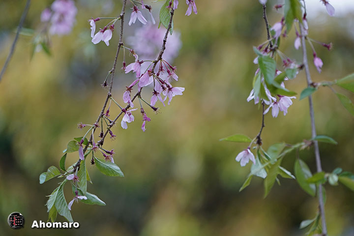 後ろの彼岸桜のピンクと相まって、散ったわりにはきれいに見えましたよ。