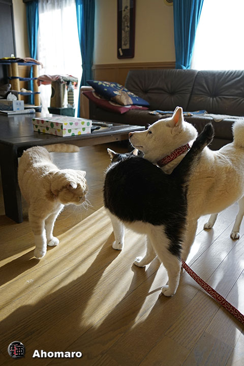 ナナちゃんお帰りなさい。 ヒロちゃん待ってたよ。 ヤマト君待って無いってか。 待ってたくせに、意地っぱりなんだから。 ナナちゃん、今日は夏も近づく八十八夜だよ。 八十八夜に摘んだお茶を飲むと長生きできる、ニャロメ。 へぇ、ヤマト君って物知りなんだね。 能ある猫はいつもケツを隠しているのよ。 それ、爪を隠すって言うんだよ。 ナナちゃんも長生きしたいけど、お茶が飲めないのが残念だね。 ヤマト君の晩酌、今夜は緑茶ハイを呑むのよ。