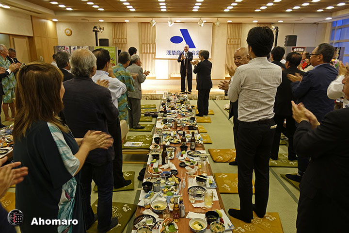 宴もたけなわ、世志凡太さん率いるあさくさハッピー連による、浅草音頭で盛り上がり。