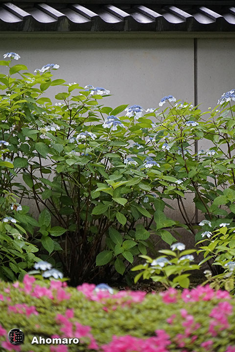 六角堂裏のあじさい。
