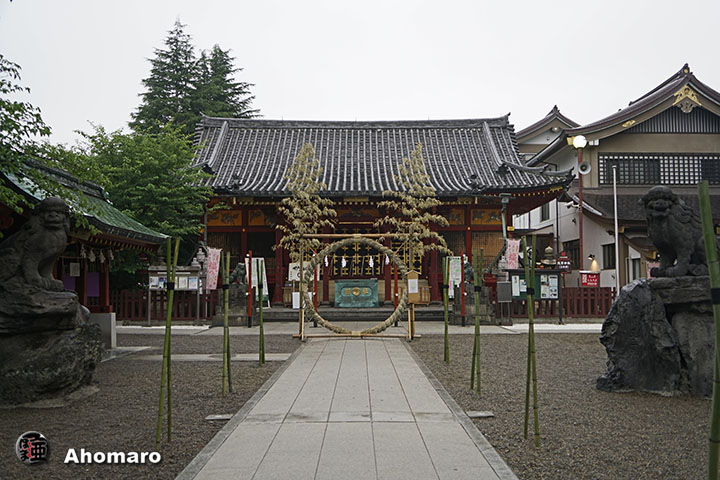 浅草神社の境内。茅の輪ができました。