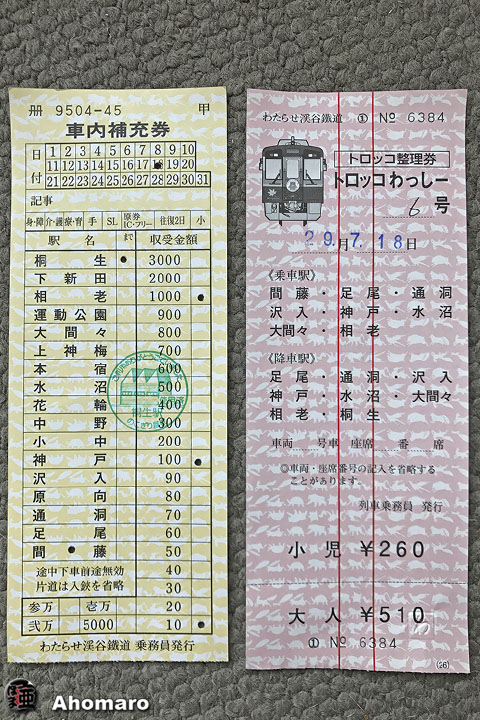 新桐生でレンタカーを借りて、JR桐生駅まで。ここからあほまろだけ「わたらせ渓谷鐵道」にて、大間々駅まで乗車。