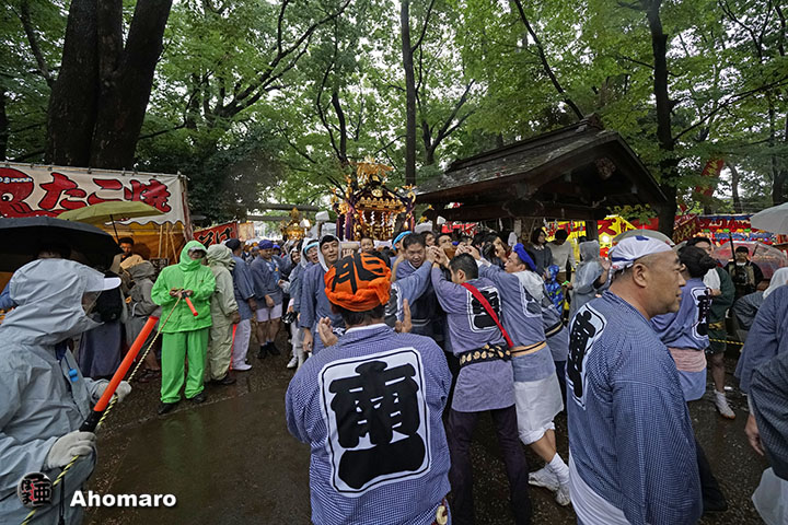 昨日は、目黒碑文谷八幡宮の例大祭でした。台風の影響で一時も降る止むこと無い雨の中でも、御神輿渡御は遂行されるとのことで、行ってまいりましたよ。