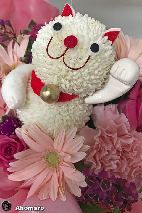 写真展会場に友人から届いていたお祝いのお花、お花の猫ちゃんのお出迎え。嬉しかったよ。
