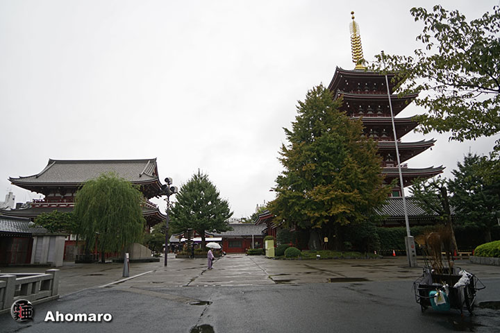 雨のため境内から東京スカイツリーは出たり消えたり。