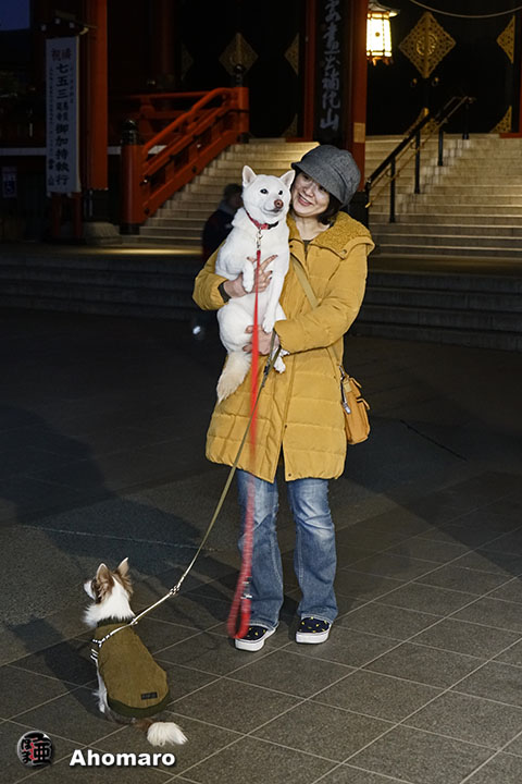 あぁ、ナナちゃんがウメちゃんママに抱っこされて戻って来ました。寒いので歩かなかったんだね。