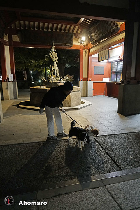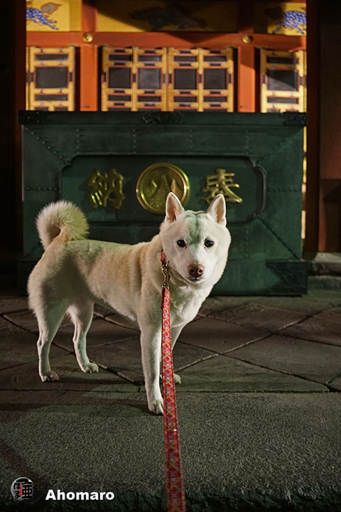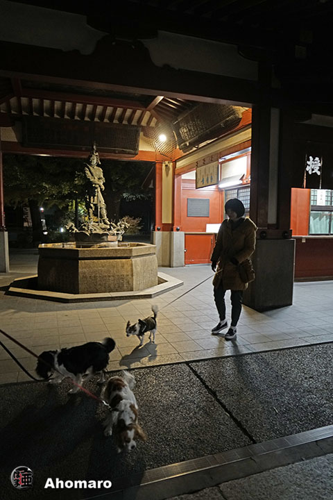 まだ暗い境内前にアンズとカンズじゃ無くて、アンズとカリンちゃんだったけど、薄暗いのでいっぱい撮ってあげた。