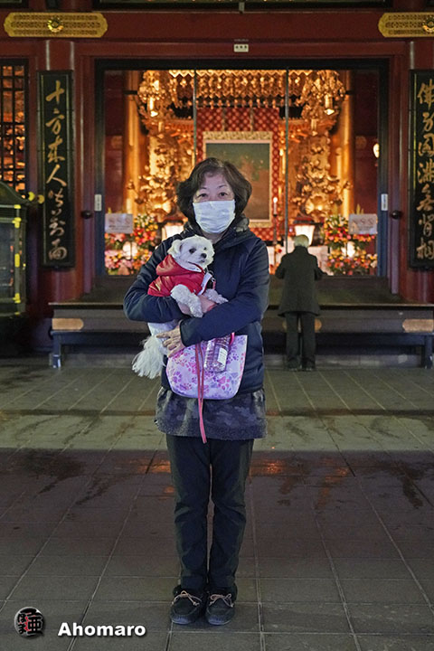 今日はお釈迦さまが悟りを開いた浄土会なので、ご利益を頂くために本堂前で撮ってあげました。