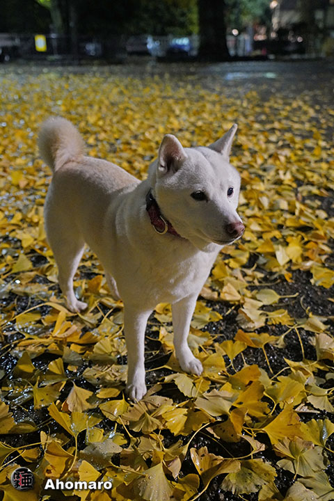 夕べの雨で緩だ銀杏の葉が全部落とされてしまいました。