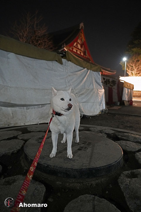 今朝もナナちゃんの散歩中、あほまろは暗い境内を巡っておりました。