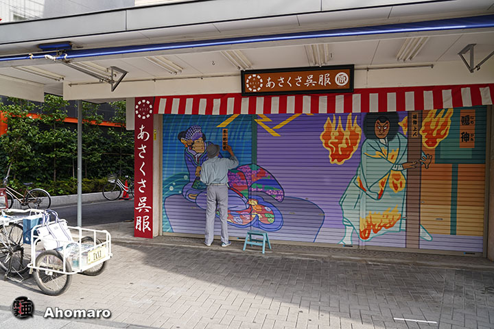 田中画伯のシャッター絵「鳴神」、そろそろ完成のようでした。