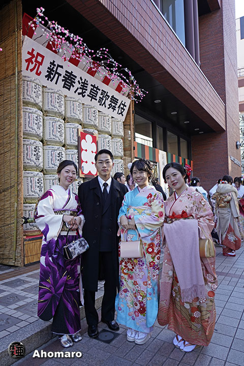 浅草の成人式は極めてオーソドックスというか、いつも普通ですよ。まだ暗い早朝から両親と一緒に浅草寺詣でをする新成人さんもいらっしゃいましたよ。