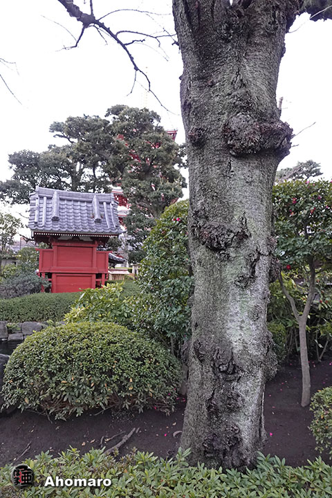 正岡子規句碑「観音で 雨に逢ひけり 花盛」
