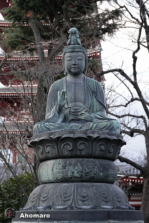 正岡子規句碑「観音で 雨に逢ひけり 花盛」