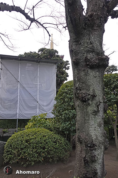 正岡子規句碑「観音で 雨に逢ひけり 花盛」