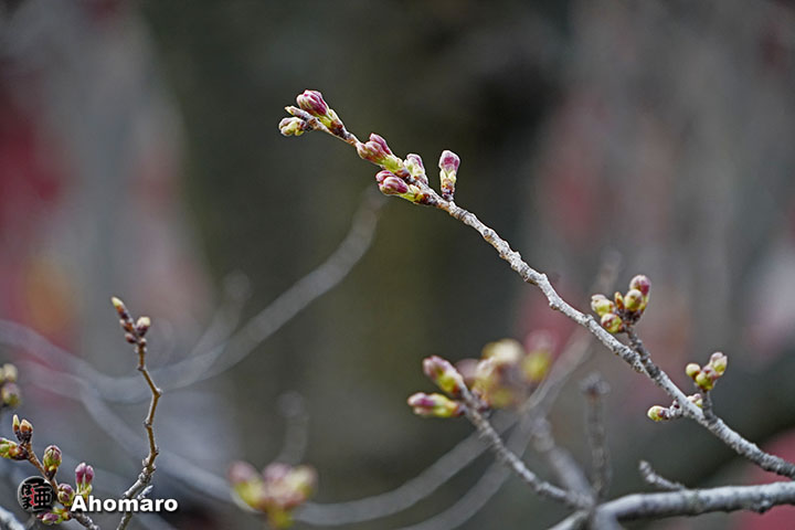境内の桜の蕾、今にも開きそうな状態ですよ。