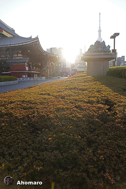 今朝の日の出:午前5時46分。雷門前:5時00分。