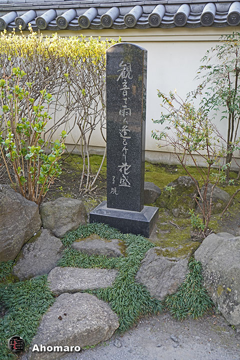 正岡子規句碑「観音で 雨に逢ひけり 花盛」