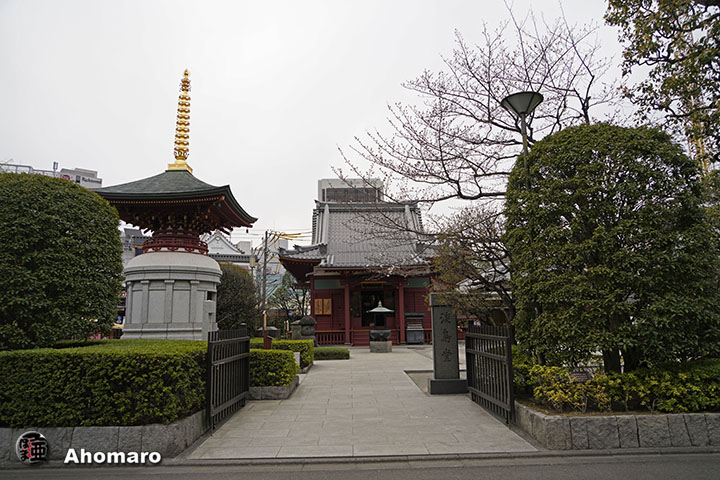 正岡子規句碑「観音で 雨に逢ひけり 花盛」