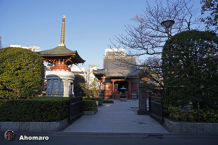 正岡子規句碑「観音で 雨に逢ひけり 花盛」