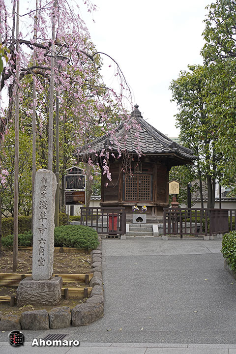 六角堂のシダレザクラ。