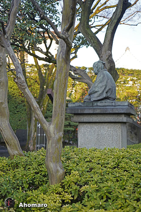 正岡子規句碑「観音で 雨に逢ひけり 花盛」