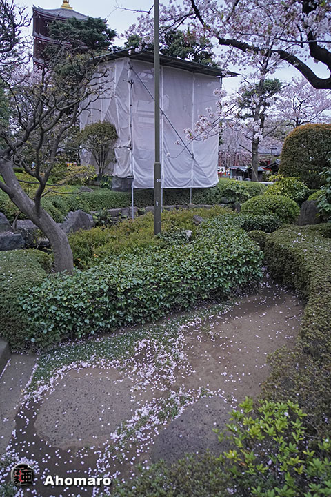 正岡子規句碑「観音で 雨に逢ひけり 花盛」