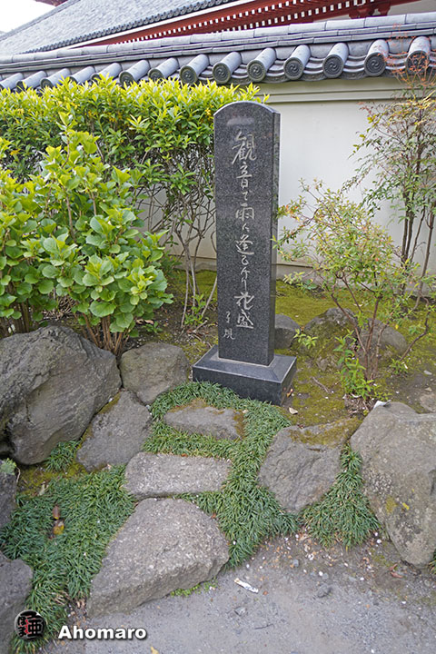 正岡子規句碑「観音で 雨に逢ひけり 花盛」