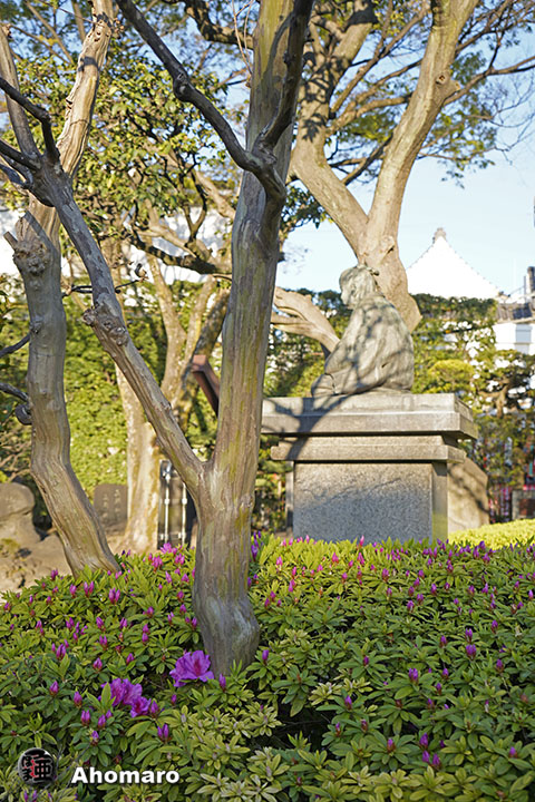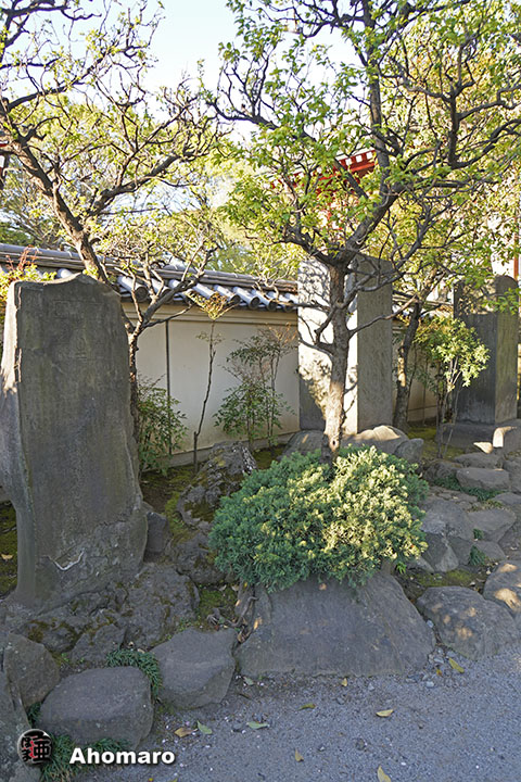 正岡子規句碑「観音で 雨に逢ひけり 花盛」