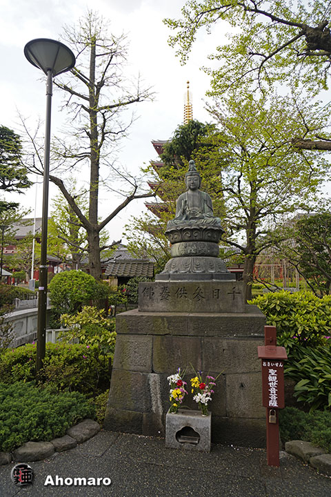 正岡子規句碑「観音で 雨に逢ひけり 花盛」