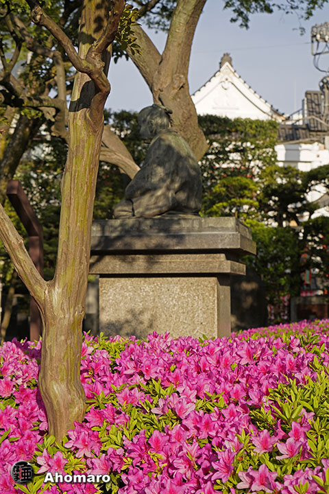 正岡子規句碑「観音で 雨に逢ひけり 花盛」