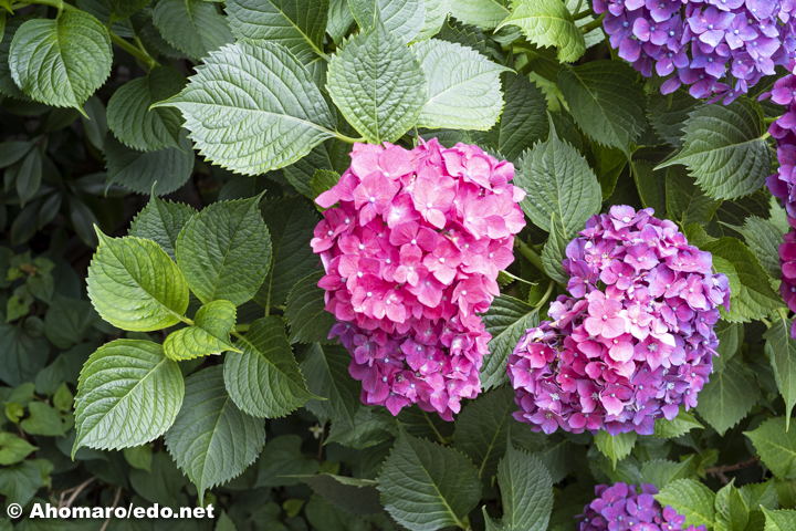 菖蒲園に向かう路地には、あじさいが満開でしたよ。