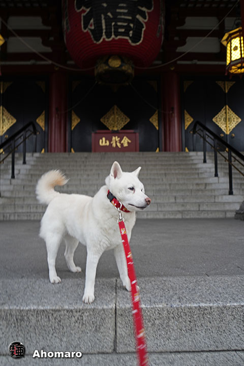 あほまろはこれから久しぶりの旅に出かけるために、ナナちゃんの散歩はいつもより40分早く済ませてしまったので、まだ薄暗い雷門でした。