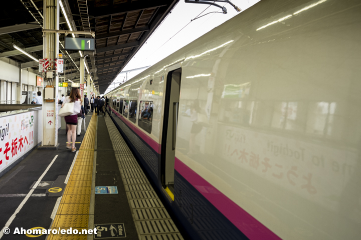 満足満足、小一時間の宇都宮滞在。新幹線のダイヤを確認すると、大宮発の臨時の新幹線「とれいゆつばさ」が来るようなので、向かいのホームから狙ってみました。