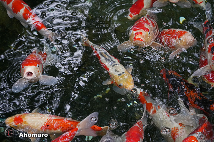 影向堂の池の水が入れ替えられてから、中の鯉も変わってしまいました。