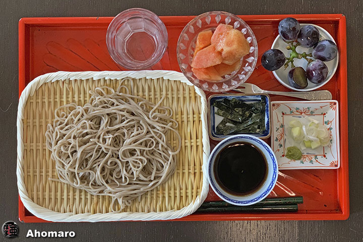 今朝はようやく梅雨が明けた記念に、久しぶりにお蕎麦の朝食にしました。このように、あほまろ家では、何か記念になることがあると、お蕎麦を頂く風習があるのです。