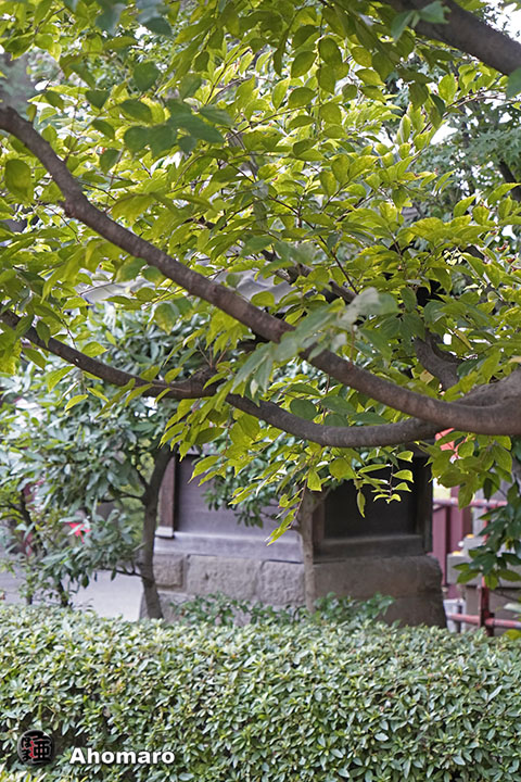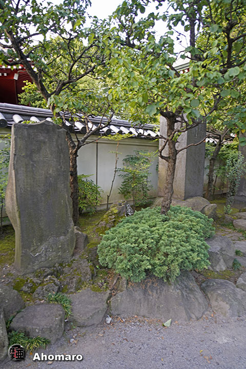 正岡子規句碑「観音で 雨に逢ひけり 花盛」