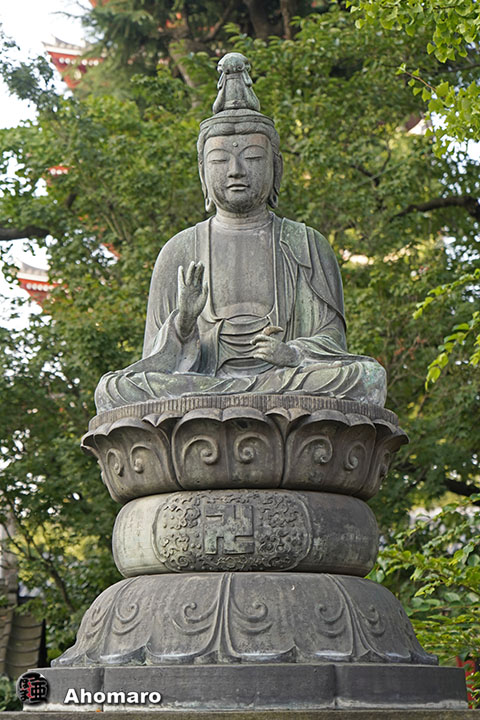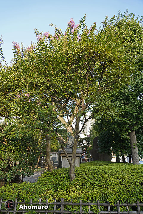 正岡子規句碑「観音で 雨に逢ひけり 花盛」