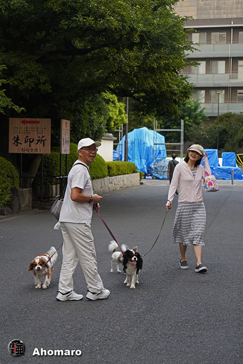 今朝の予報は雨が降ったりやんだりの空模様と言ってましたが、散歩中に降られることはありませんでしたよ。 でも、とっても蒸し暑くて久しぶりに全身汗だくになってしまいました。 明日は浅草サンバカーニバルで、あほまろは一日中外にで立ってなければいけないので、雨だけは勘弁してくださいね。 チャンチャン。