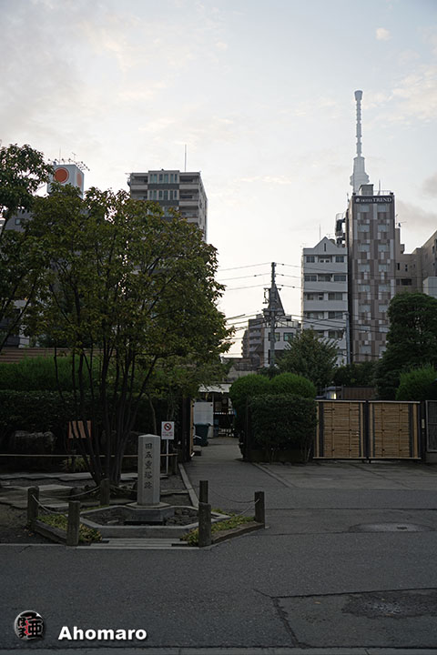 正岡子規句碑「観音で 雨に逢ひけり 花盛」