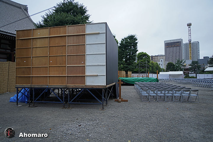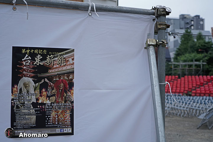 今日は浅草寺裏広場にて、「第40回台東薪能」が開催されますが、午後から雷雨の予報が出ているので、せっかく準備をしたのに、この場所での開催は中止されることでしょうね。