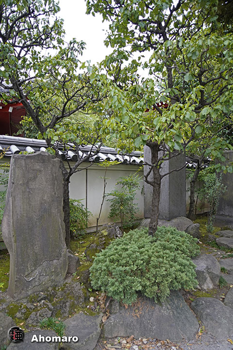 正岡子規句碑「観音で 雨に逢ひけり 花盛」