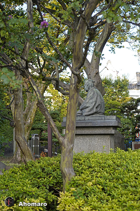 正岡子規句碑「観音で 雨に逢ひけり 花盛」