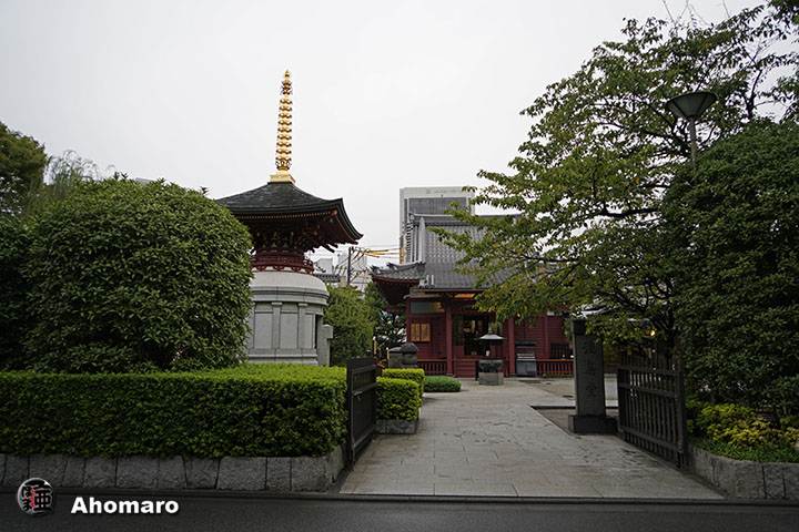 正岡子規句碑「観音で 雨に逢ひけり 花盛」
