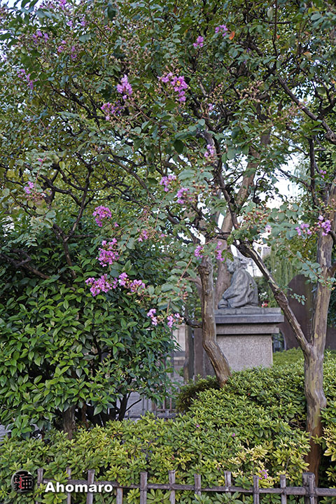 正岡子規句碑「観音で 雨に逢ひけり 花盛」