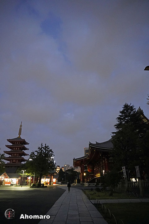 今朝の日の出:午前5時56分。雷門前:5時00分。