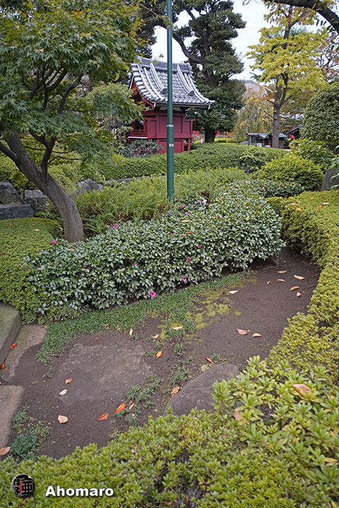 正岡子規句碑「観音で 雨に逢ひけり 花盛」